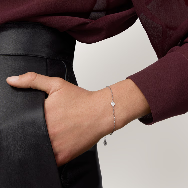 Set with a carefully selected diamond, the bracelet offers gentle brilliance that enhances its refined silhouette without overshadowing its delicate character.• Craftsmanship & Materials