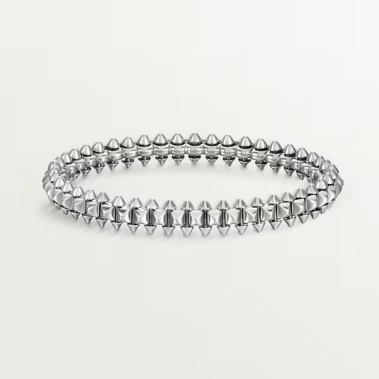The Clash de Cartier bracelet redefines classic jewelry codes through a contemporary lens. Featuring contrasting geometric elements and distinctive studs, the design embodies Cartier’s spirit of creative tension—where boldness meets sophistication.