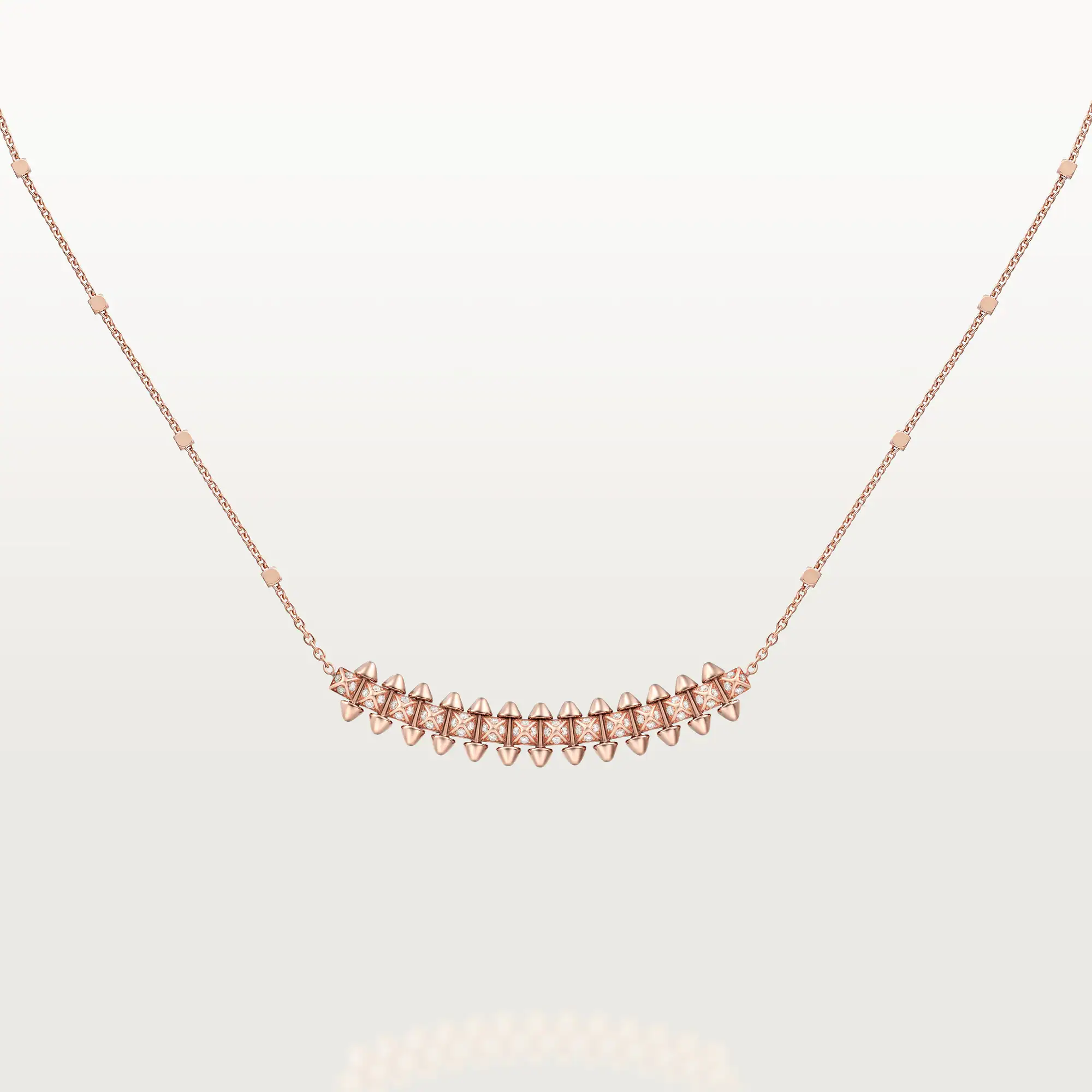 Boldly sculptural and irresistibly rebellious, the Clash de Cartier paved pendant transforms classic jewelry codes into a daring modern statement. Its signature stud-motif design—both soft in shape and sharp in attitude—is elevated with brilliant-cut diamonds that ignite every angle with dazzling light.