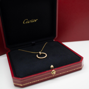 The Juste un Clou pendant transforms the simplicity of a nail into a striking expression of modern elegance. Shaped in gleaming 18K gold, its sleek curve wraps effortlessly into a sculptural loop—a design that feels bold, refined, and unmistakably contemporary.