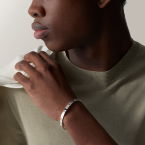 Set with 4 carefully selected diamonds, the bracelet offers delicate sparkle that enhances its minimalist aesthetic without overpowering its iconic form.• Craftsmanship & Materials