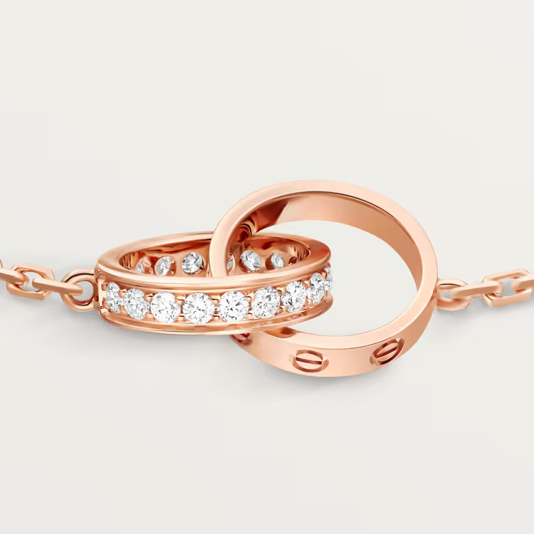 The LOVE bracelet on chain reinterprets Cartier’s iconic screw motif in a lighter, contemporary form. The half-pavé design introduces subtle brilliance while preserving the timeless symbolism of love and commitment.• Half-Pavé Setting