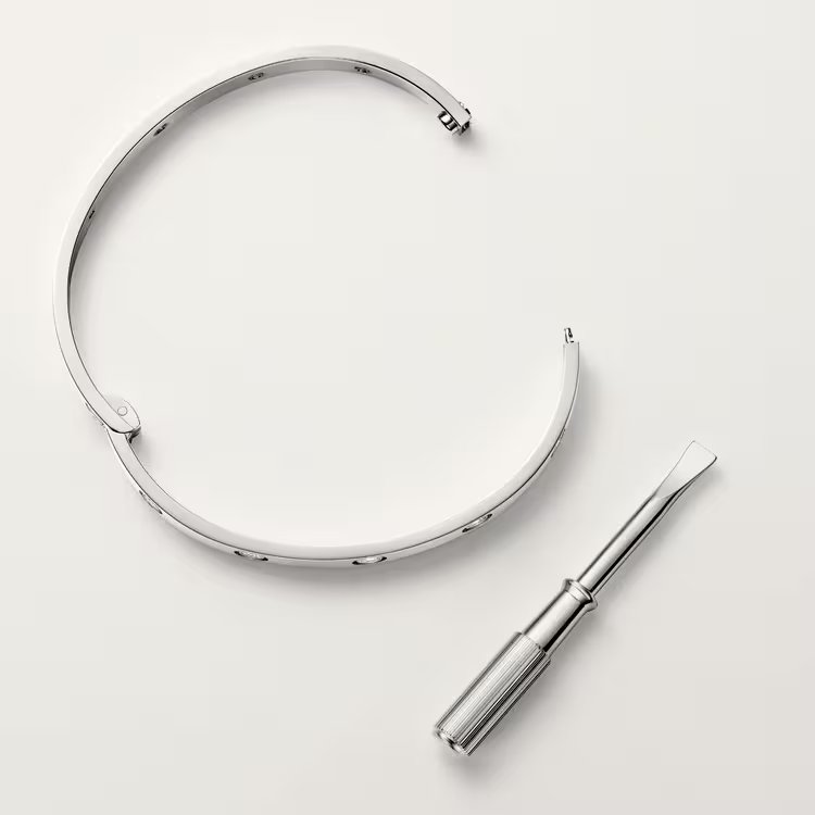 Elegant yet versatile, the classic LOVE bracelet is suitable for everyday wear and special occasions. It can be worn alone as a statement piece or paired with other Cartier designs for a timeless layered look.