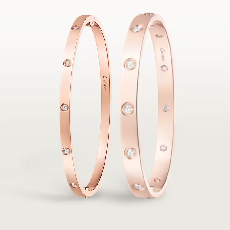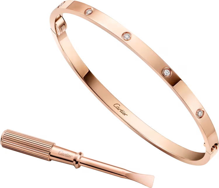 The Cartier LOVE bracelet, small model, presents a delicate interpretation of the Maison’s iconic symbol of eternal love. Featuring the signature screw motif, the design is enhanced with 10 diamonds that add elegant sparkle while maintaining its sleek, minimalist character.• Diamonds