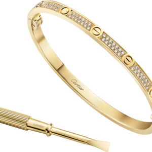 The Cartier LOVE bracelet, small model, offers a more delicate interpretation of the Maison’s iconic design. Featuring the signature screw motif, the pavé setting adds subtle brilliance while maintaining the bracelet’s elegant, minimalist character.