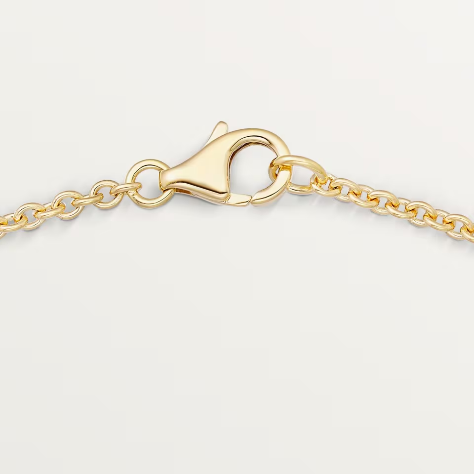 Pure, timeless, and instantly recognizable—the Cartier LOVE pendant captures the essence of commitment with its sleek circular silhouette and signature screw motifs. Crafted in luminous 18K gold, it glows with understated elegance, resting on the neckline like a quiet yet powerful symbol of connection.