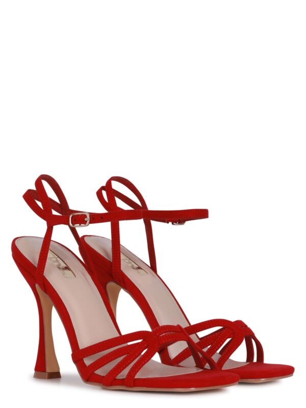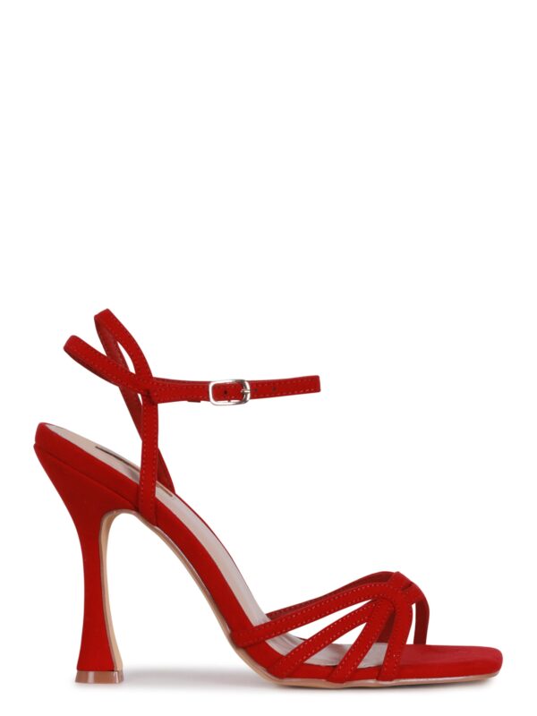 Discover Serena, the perfect soft faux suede sandal for any formal occasion. This stylish high-heeled sandal features a caged front strap that adds a modern flair to any look. With its timeless design, Serena is the ideal companion for weddings and parties.