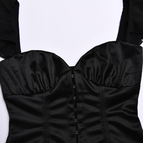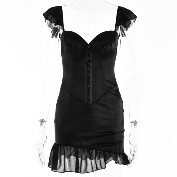 Be the first to review “Solid ruched cap sleeve ruffle button mini dress”