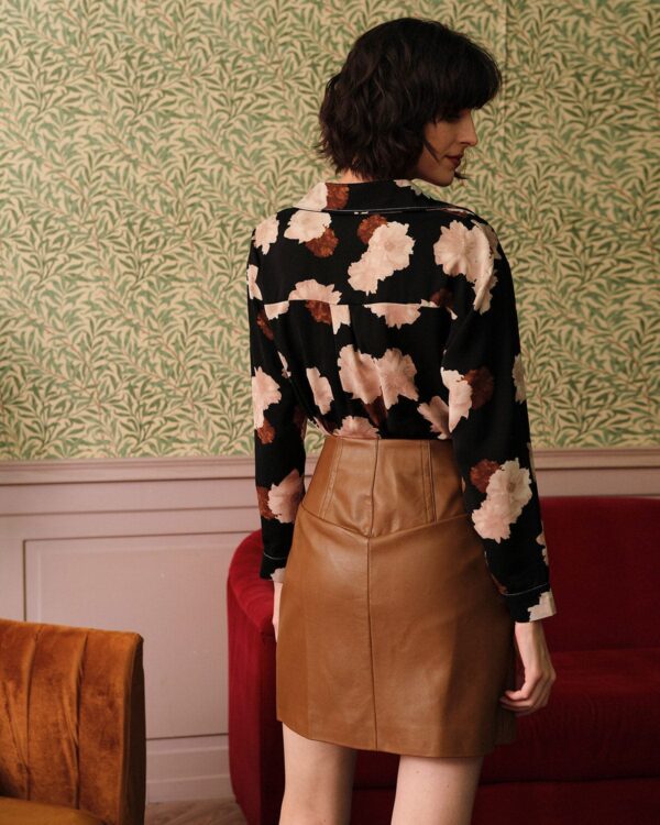 This suits fall/winter wear as a fashion item. Designed with brown and leather stitching, it tinges with a retro classic vibe. The slim-fitting and high-waisted design offer females good figure ratios visually, while the invisible side zip would never affect its aesthetic visual effect. Perfectly suits matching tops and coats of any kind this fall.