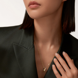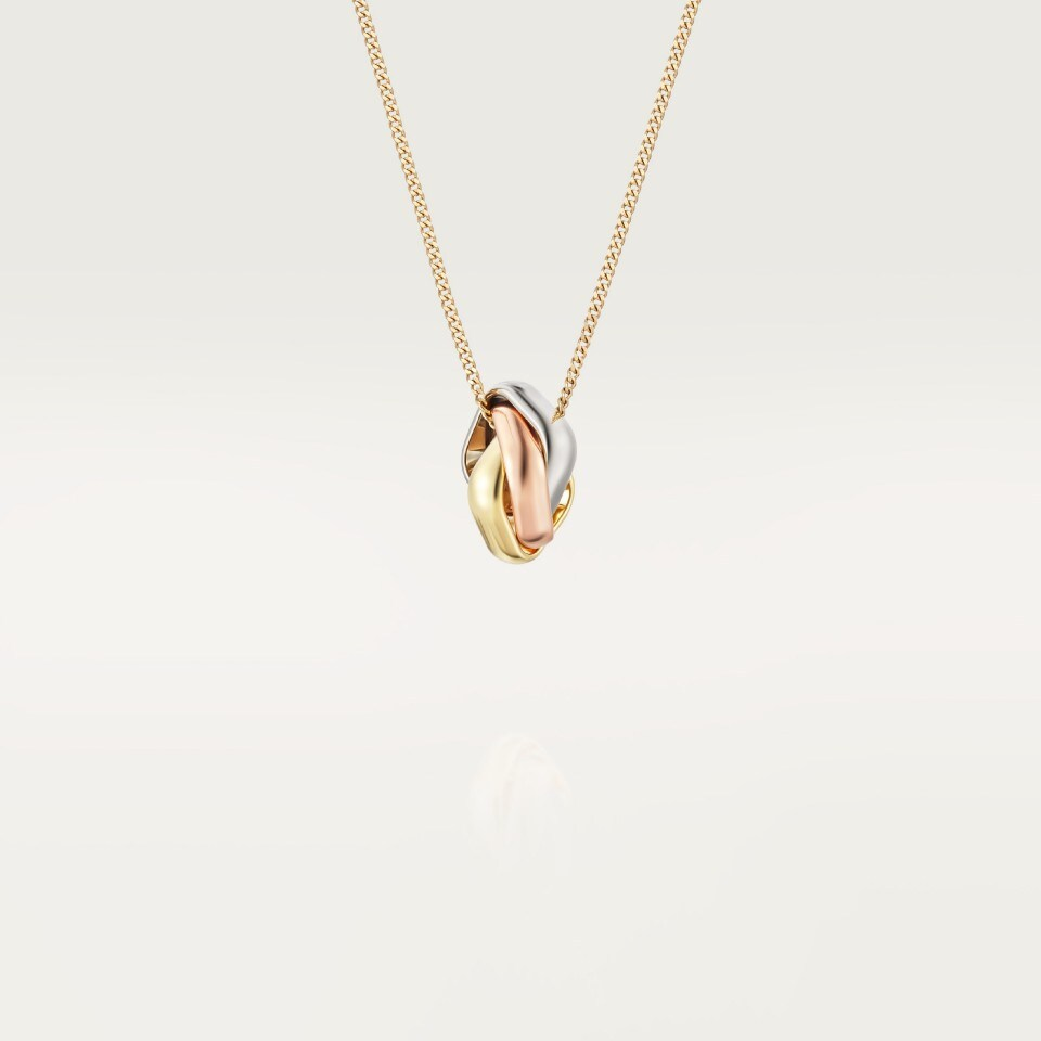 Graceful, intimate, and beautifully timeless—the cushion-shaped Trinity pendant reinterprets Cartier’s iconic trio with soft geometry and irresistible fluidity. Three interlaced bands in 18K white, yellow, and rose gold come together in a sculptural cushion form, symbolizing love, fidelity, and friendship in perfect balance.