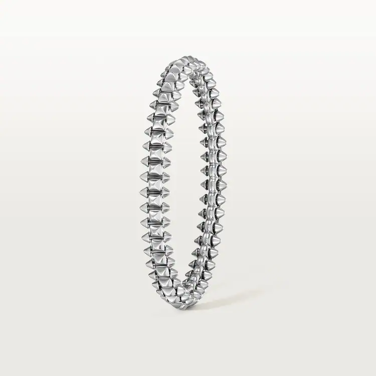 The Clash de Cartier bracelet redefines classic jewelry codes through a contemporary lens. Featuring contrasting geometric elements and distinctive studs, the design embodies Cartier’s spirit of creative tension—where boldness meets sophistication.
