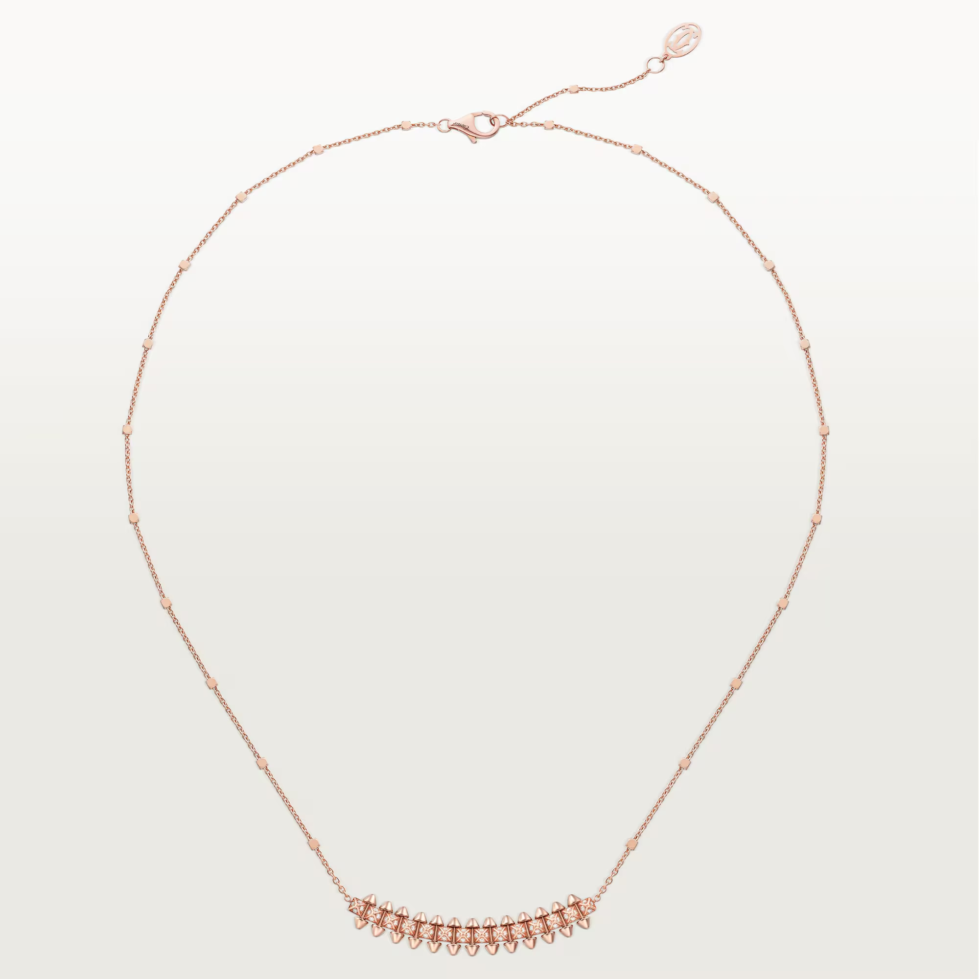 Boldly sculptural and irresistibly rebellious, the Clash de Cartier paved pendant transforms classic jewelry codes into a daring modern statement. Its signature stud-motif design—both soft in shape and sharp in attitude—is elevated with brilliant-cut diamonds that ignite every angle with dazzling light.