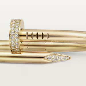 Carefully set diamonds accent the bracelet’s iconic silhouette, adding refined brilliance without diminishing its bold, minimalist character.• Silhouette & Proportions
