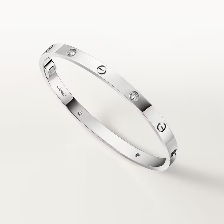The Cartier LOVE bracelet, medium model, is a modern interpretation of the Maison’s enduring symbol of eternal love. Defined by the signature screw motif, the design is elevated with 4 diamonds that add understated brilliance while preserving its clean, bold lines.• Diamonds