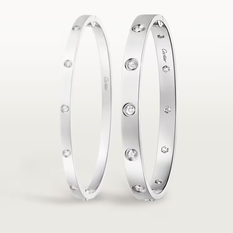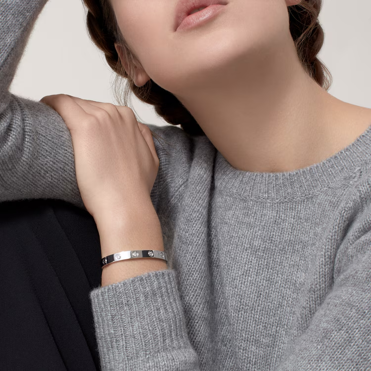 Elegant yet versatile, the classic LOVE bracelet is suitable for everyday wear and special occasions. It can be worn alone as a statement piece or paired with other Cartier designs for a timeless layered look.