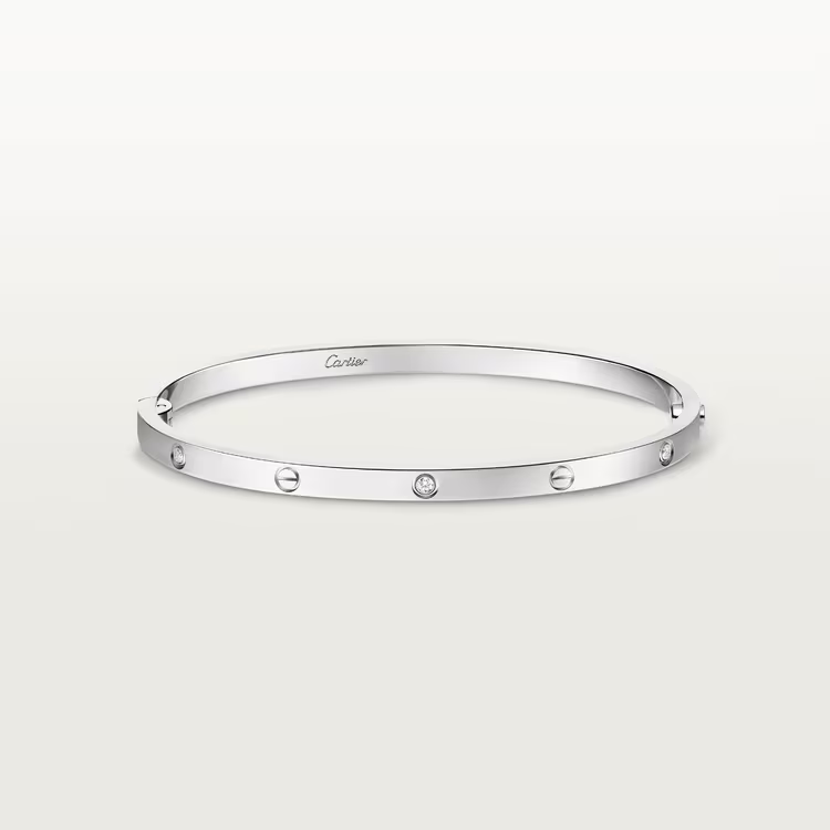 The Cartier LOVE bracelet, small model, presents a refined and delicate interpretation of the Maison’s iconic symbol of eternal love. Defined by the signature screw motif, the design is enhanced with 6 diamonds that add elegant sparkle while preserving its minimalist character.• Diamonds