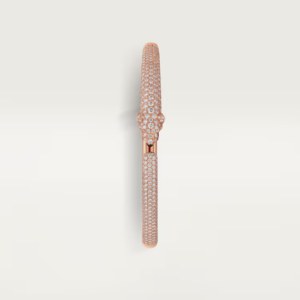 The Panthère de Cartier bracelet draws inspiration from Cartier’s legendary panther motif, symbolizing strength, elegance, and independence. The small model offers a more delicate interpretation, enhanced with pavé-set stones that add subtle brilliance while preserving the fluid silhouette.
